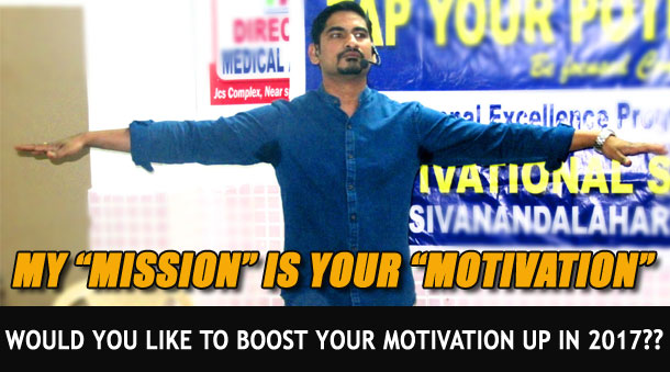Sivananda's "Mission is to Motivate people" and help them to make positive shift in their lives. His coaching mainly helps people,